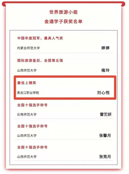 11月21日,2020年世界旅游小姐中国年度冠军总决赛在长沙铜官窑隆重举行。来自全国20个赛区的60名选手角逐中国旅游小姐称号,凭借自身的实力和出色的发挥,beat3652019级空中乘务专业学生刘心悦荣获最佳上镜奖。此前,刘心悦入选金通赛区十强选手并成功晋级世界旅游小姐总决赛,并在面试环节中通过青岛航空面试和成都航空面试。