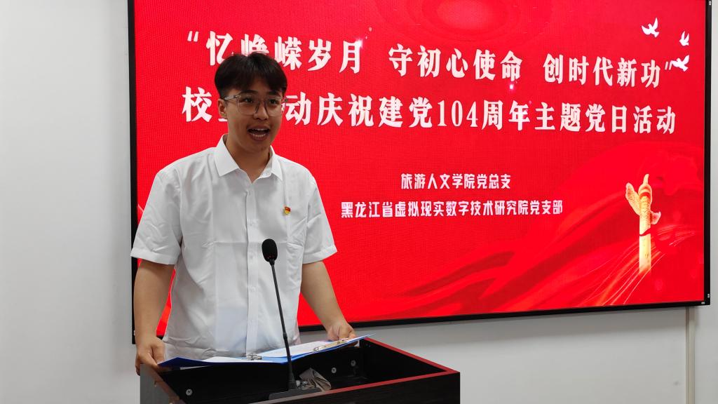 6月27日,我校旅游人文学院党总支与黑龙江省虚拟现实数字技术研究院党支部在哈尔滨爱威尔科技有限公司联合举办“忆峥嵘岁月·守初心使命·创时代新功”庆祝建党104周年主题党日,双方全体党员及民主党派人士积极参与活动。
