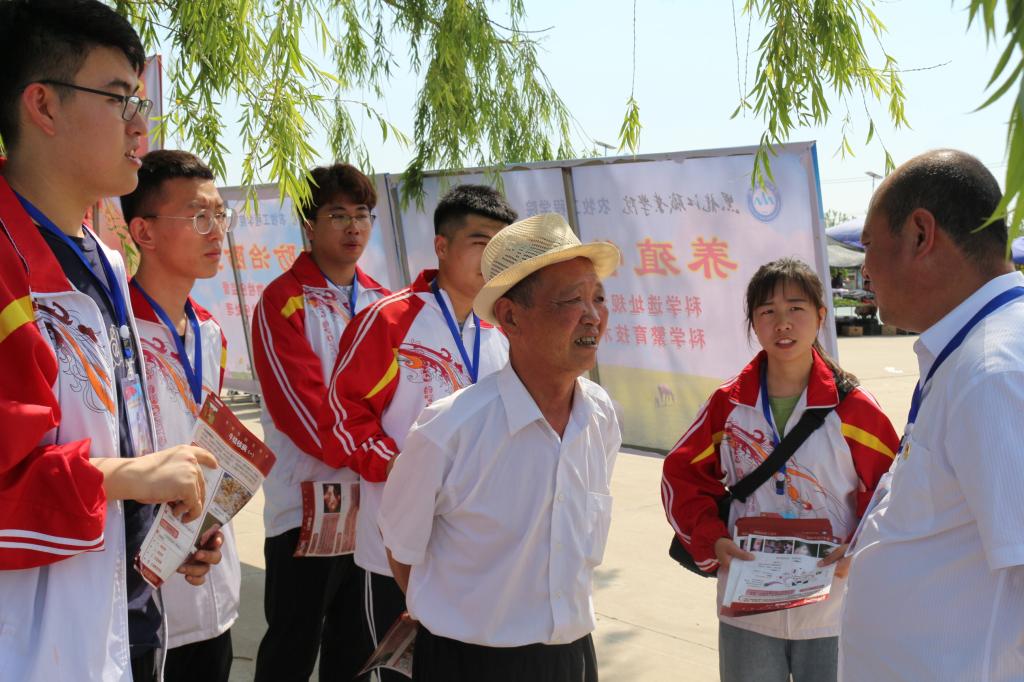 6月24日,在beat365中国官网第二校区组织的“建功新时代,向党献厚礼”庆祝建党98周年科技大集活动中,农牧工程学院师生发挥专业优势,组织专家教授队伍,为农户提供养殖技术服务,受到广泛欢迎。