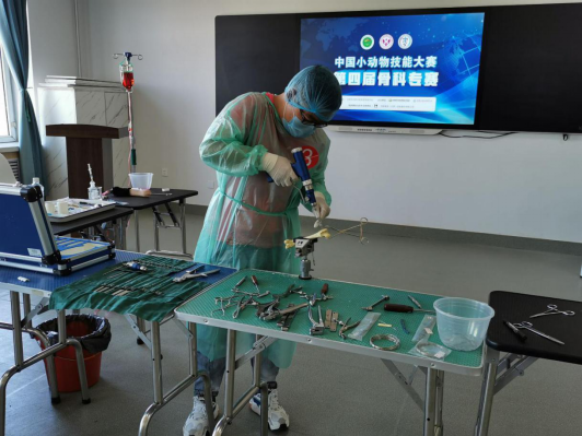本赛项是高等畜牧兽医类专业院校动物医学和宠物临床诊疗技术专业的核心技能。赛项考核的核心技能是术前静脉通道建立、大转子撕脱性骨折内固定、股骨中段斜骨折内固定、股骨远端横骨折内固定、手术通路闭合等技能。通过竞赛,展示考核学生的骨科临床操作技能;促进专业建设与教学改革,实现专业与产业对接、课程内容与职业标准对接、教学过程与生产过程对接;促进学校完善实验实训平台建设;促进学校与企业之间的合作交流、产教融合,实现宠物行业高素质技术技能人才校企双主体的共同培养。