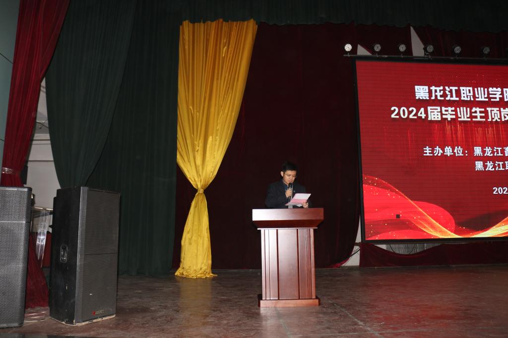 开幕式由农牧工程学院党总支副书记时广明主持,农牧工程学院院长邹洪波在开幕式上致辞,代表学校和集团对到会的用人单位表示欢迎和感谢,并对顶岗实习学生提出要求。广西扬翔股份有限公司东北区副经理徐晓婵代表参会企业发言,她对学院的人才培养工作给予高度肯定,代表畜牧提出了企业与学校深度合作的意愿。动物医学21-02班赵胤凯同学代表2024级毕业生发言,对在校期间学校和企业的培养表示感谢,并表达了在顶岗实习期间遵章守纪,认真学习,做德才兼备并勇于创新的毕业生。农牧工程学院党总支书记丁原春宣布“双选会”开幕。