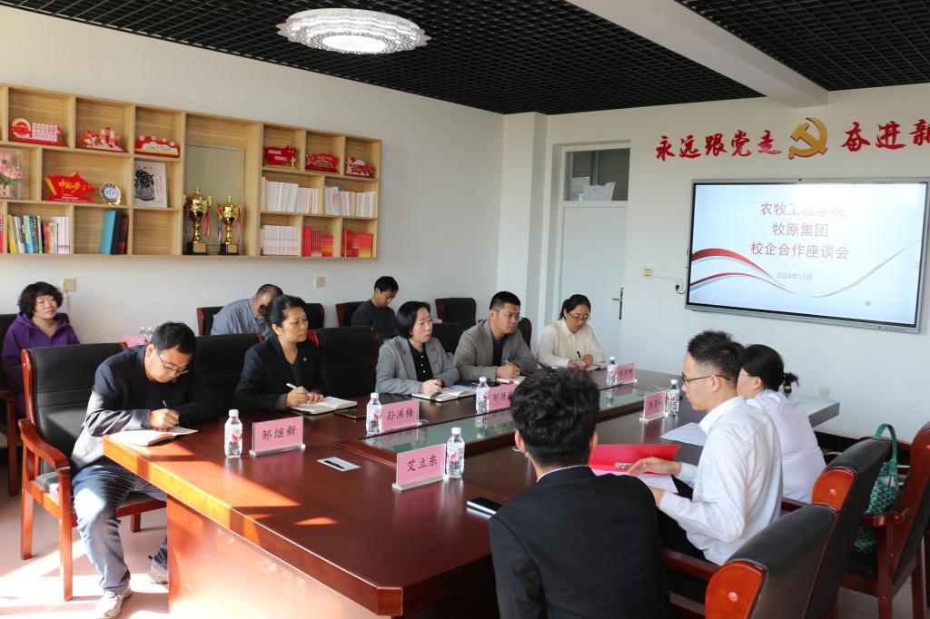10月11日上午,农牧工程学院与牧原集团在二号实训楼425室举行了校企合作交流座谈会。学院院长邹洪波、党总支副书记时广明、副院长孙洪梅及相关专业主任,牧原集团区域人资负责人郭若楠,区域招聘负责人赵东等人员出席会议。