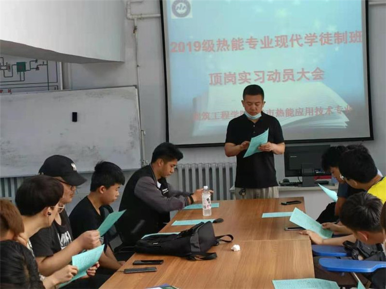 2021年7月2日,2019级城市热能应用技术专业学生顶岗实习动员大会在锅炉机组模型实训室顺利召开。
