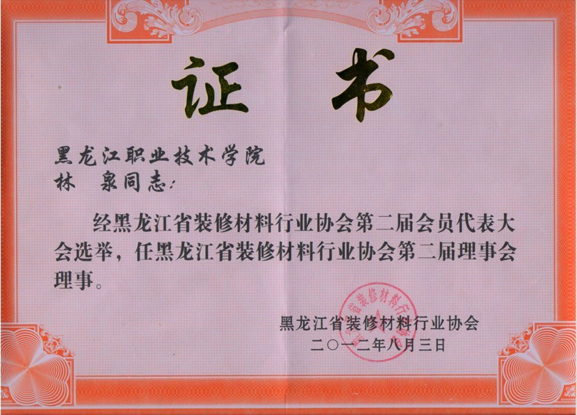 时值学院国家级骨干院校建设取得阶段性成果,各项工作蒸蒸日上之际;beat365中国官网诞生,学院进入历史发展新阶段之时。林泉老师作为能源与材料工程学院的专任教师、建筑装饰工程技术专业团队带头人代表beat365中国官网加入到黑龙江装修材料行业协会,成为协会理事,为能材学院获取了雄厚的优势资源和校企合作先机。装修材料行业协会拥有着近二百余家企业,蕴藏着巨大的校企合作资源和广阔人力需求市场,意义深远,作用巨大。同时,也为今后学院和众多行业企业进行专业共建、人才培养、课程改革、实习实训等校企合作项目提供了强大的推动力。