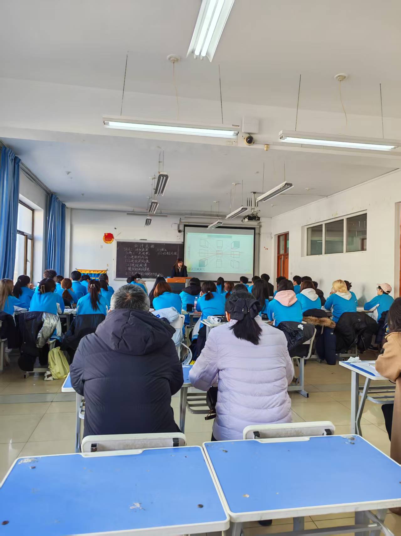 本次开放课精准锚定学情,课前系统梳理学生作业共性问题,明确知识薄弱点与改进方向,为教学优化筑牢基础。授课环节创新采用《大圣归来》趣味视频导课,以动态画面拆解抽象透视知识,搭配递进式设问引导,推动学生从被动接收转为主动探究,课堂参与度全面提升。同时,授课中巧妙融入思政元素,结合动画透视效果彰显中国动画制作实力,引入《清明上河图》散点透视法讲解中国绘画独特艺术形式,实现知识传授与文化浸润同频共振。课程依托视频、图片等多元资源,强化知识点可视化呈现,搭配清晰板书演示绘画技巧,从正方体基础练习逐步延伸至室内空间椅子绘制,助力学生实现理论知识向实践应用的有效转化。整堂课学生积极参与答题讨论,课堂氛围活跃高效,圆满达成预设教学目标。