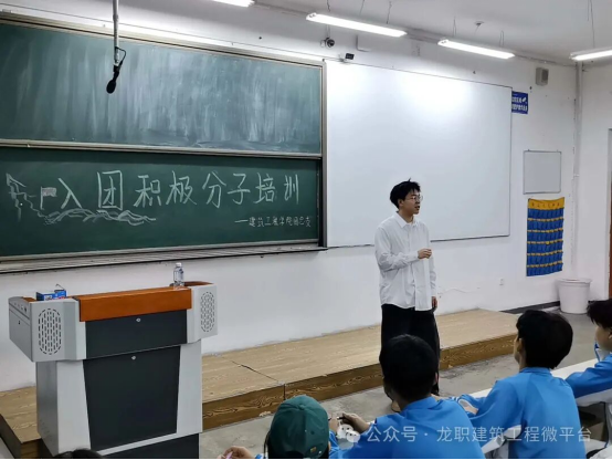 培训中,韩松泽辅导员以“青春与责任同行” 为核心展开授课。他结合建筑行业发展历程与青年成长案例,从共青团的组织性质、青年应具备的担当意识等方面进行讲解,鼓励同学们将专业学习与时代需求相结合,在技能提升中践行青春使命。互动环节里,韩导围绕 “如何在专业学习中体现青年担当” 发起提问,同学们积极举手分享想法,现场交流氛围热烈,进一步加深了大家对入团意义的理解。