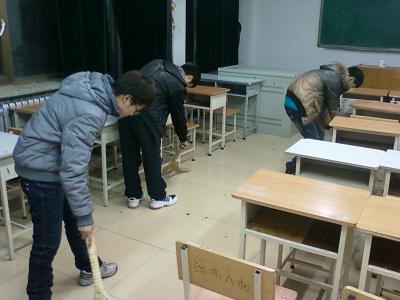 自从学生会成立以来,我系生活部每天准时对分管的三个教室的卫生进行细致打扫。他们利用了自己的课余时间不怕脏、不怕累,教室的卫生在他们的用心打扫下焕然一新,多次受到系里表扬。这种乐于奉献、任劳任怨、吃苦耐劳的宝贵精神值得我们学习!