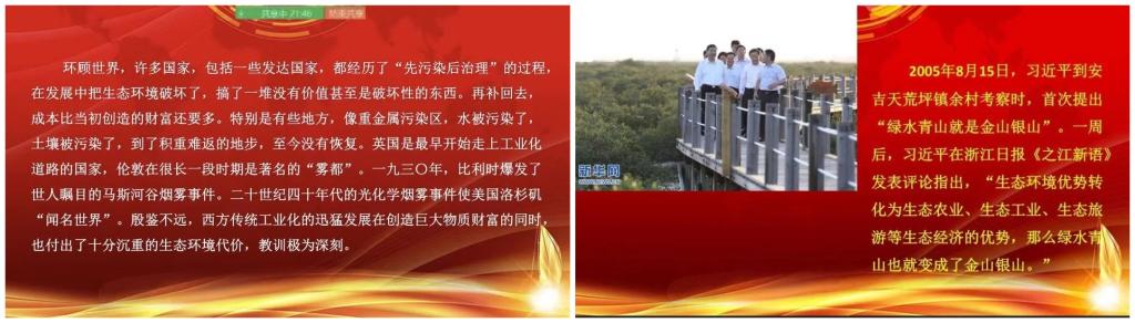 为深入学习贯彻党的二十大精神和习近平总书记在全国生态环境保护大会上的重要讲话精神,我院开展以“绿水青山就是金山银山”为主题的班会,分别从生态文明的内涵,新时代生态文明建设原则,改革开放以来我国生态文明的发展历程,建设资源节约型、环境友好型社会,应对重大环境问题的挑战等多方面向学生树立和践行绿水青山就是金山银山的理念。