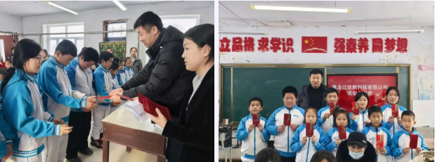 活动现场,学院依兰籍优秀毕业生、黑龙江京朗科技有限公司总经理李丹龙心系家乡教育,情牵母校帮扶事业,不仅为土城子学校设立专项奖学金,还亲手将奖学金发放到学生手中。这份饱含乡梓情怀的爱心,既为孩子们的求学之路增添助力,也彰显了优秀校友反哺桑梓、回馈社会的责任担当。