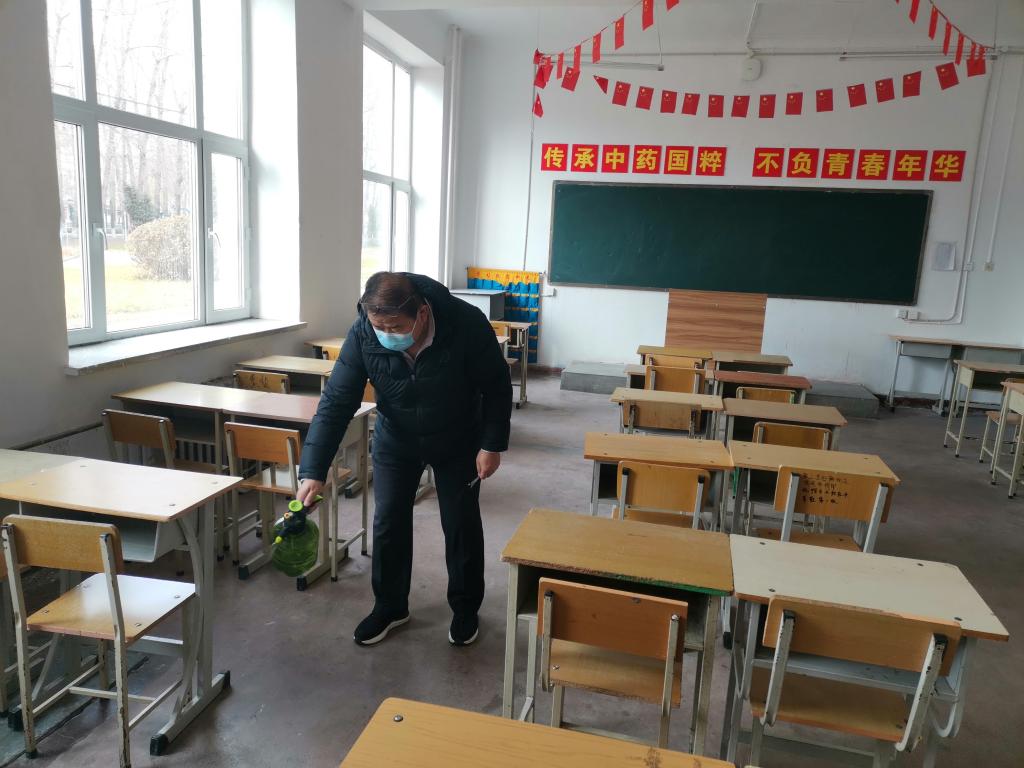 2021年11月1日上午,食品药品学院院长丁原春、党总支书记史兴山、综合办主任高财智主动加入学生党支部志愿服务队,与学生党支部教师志愿者们共同开展食品药品学院教室清扫消杀通风工作,为选择来教室上网课的学生提供安全整洁的学习环境。志愿服务队成员带着口罩、拿着清扫工具、提着装满消毒水的消杀喷雾桶,穿梭于各个教室,对食品药品学院所属全部教室进行全方位、无死角的清扫、消杀和通风。志愿者们分工明确、团结协作,有的负责清扫垃圾、有的负责摆放教室桌椅、有的负责配制消毒液、有的负责消杀通风作业。在消杀过程中,消杀桶发生爆裂,消毒水浸透了丁院长的衣服,但他没有在意,仍然带领志愿服务队顺利完成清扫消杀通风工作。整个工作持续两个多小时,虽然汗水在志愿者的额头泛起,但看到教室窗明几净、桌椅摆放整齐、地面干净整洁,志愿者们露出了欣慰又满足的笑容。