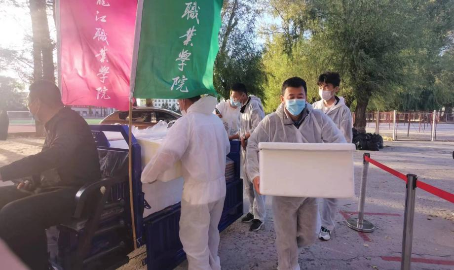 在学院上下一心、同心抗疫的氛围下,全体学生理解、包容、感恩,争做校园安全的保卫者,积极投身抗疫服务工作,自愿排班,有序帮助楼层教师取餐、送餐,贡献出自己的一份力量。