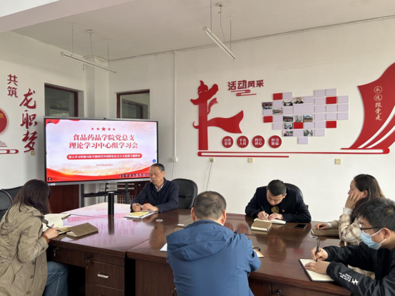 4月28日下午,食品药品学院理论学习中心组开展学习贯彻习近平新时代中国特色社会主义思想主题教育第一次专题学习,学院班子成员、党总支委员、支部书记、三办负责人参加会议,会议由党总支书记陈晓华主持。