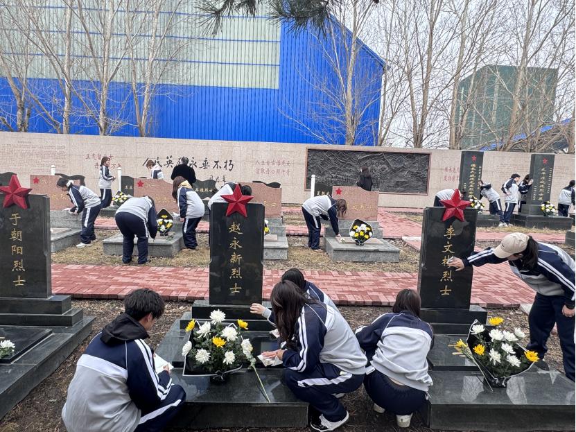 活动在庄严肃穆的氛围中拉开帷幕。全体人员整齐列队于烈士纪念碑前,怀着崇敬的心情向革命烈士默哀。默哀毕,学院领导、双城区团委领导、教师代表及学生代表共同向烈士敬献花篮,鲜花寄托着对革命先烈的无限追思,表达了对他们的崇高敬意。