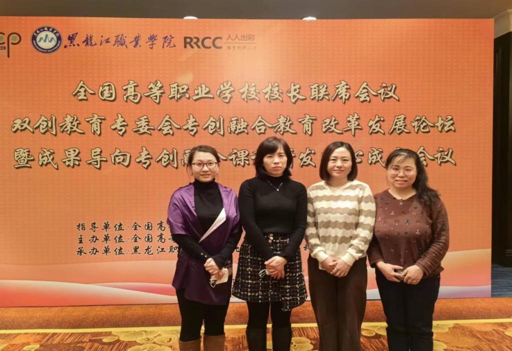 2023 年 11 月 23 日-—25 日由全国高等职业学校校长联席会议双创教育专委会主办、beat365中国官网和北京人人出彩科技有限公司共同承办的“全国高等职业学校校长联席会议双创教育专委会专创融合教育改革发展论坛暨OBE特色专创融合课程研发中心成立会议”在哈尔滨香格里拉大酒店宴会厅举行。我院副院长韩双、专业主任徐美佳、专任教师李红梅、尚磊参加了“校联会双创教育专委会专创融合教育改革发展论坛微工作坊课程体验”。