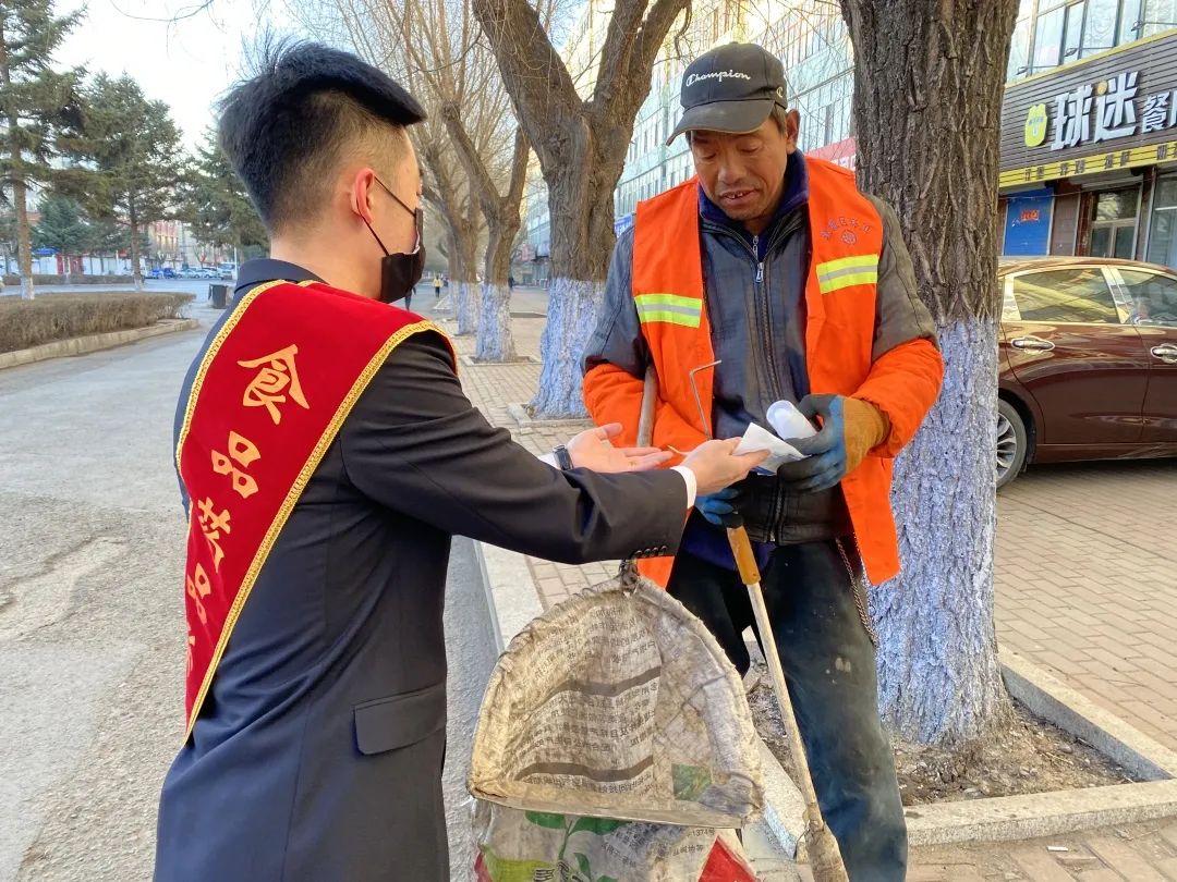 为了弘扬雷锋精神,表达对环卫工人不辞辛苦保持城市环境清洁的感谢,食品药品学院于2021年4月10日早上5点20分,组织学生会成员者为环卫工人分发口罩,用实际行动筑起抵挡疫情传播的铁墙。