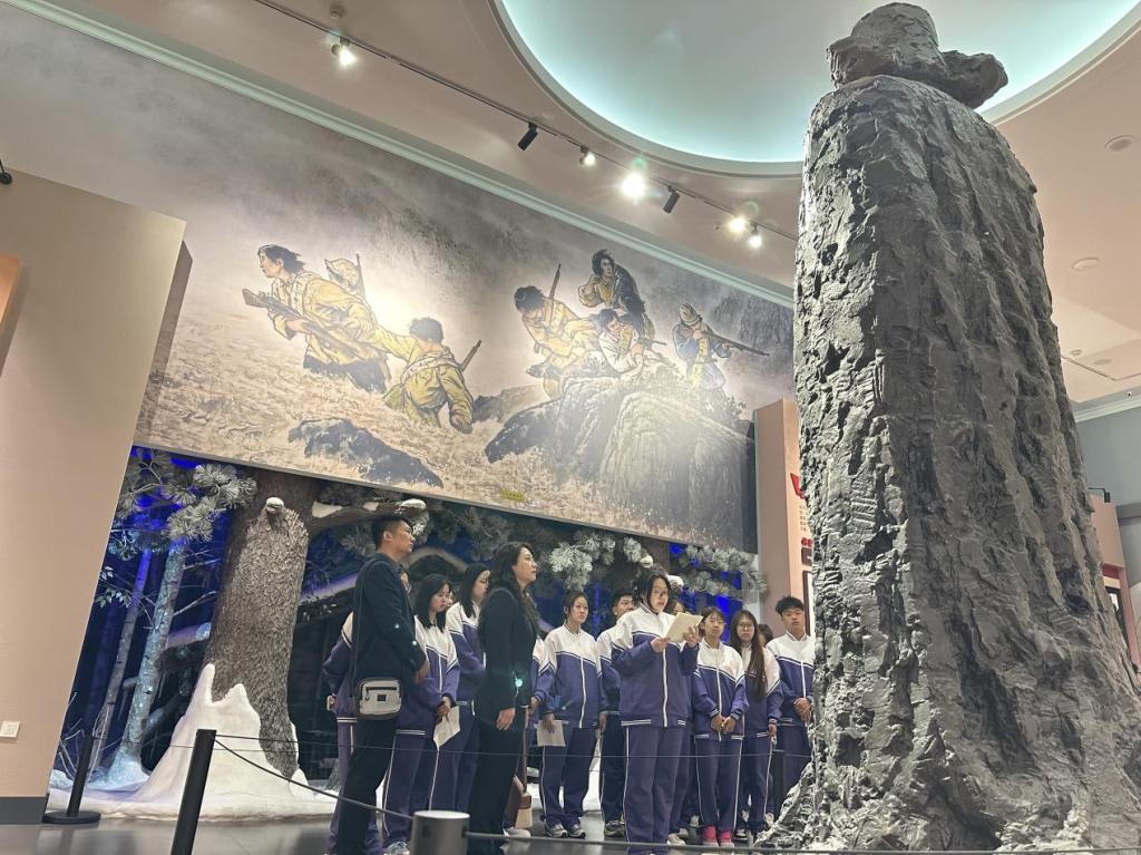 思政课教师将教学现场移至纪念馆内,学生通过文物、文献与历史照片多角度了解抗战历程。通过沉浸式场景,学生感受到北满抗联部队西征的艰苦条件,并与“东北抗联小战士”虚拟人物互动,了解七星砬子兵工厂运作和战士日常。学生刘锐希表示,赵尚志的手枪和老师讲解,让她真正体会到“不畏牺牲”背后的份量。