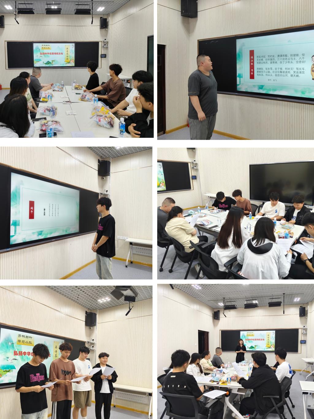 6月6日,马克思主义学院芳林新叶学习小队在端午佳节来临之际,以“弘扬中华优秀传统文化”为主题,进行了一次品诗茶话会活动。参加活动的同学有白杨、吴硕、赵延鹤、吕润泽、张佳义、汪志轩、刘欣纯、王玉琦、刘怡,分别来自建筑工程、数控技术和工程造价专业。