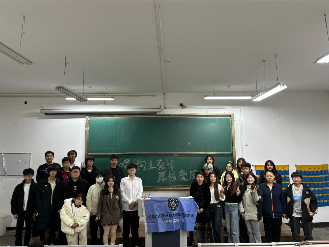 11月15日,在清华楼东阶201,马克思主义学院秦晶娟老师指导的北斗星乐器社团成功举办歌唱比赛,本次比赛以“唱响主旋律、厚植爱国情怀”为主题,旨在以“大课堂”拓展“大思政课”育人场域,依托社团活动通过歌声传递正能量,激发社团成员爱国情怀。
