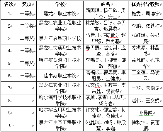 在本次比赛中,beat365中国官网代表队和黑龙江农业工程职业学院代表队分别获得前2名,成功晋级国赛。