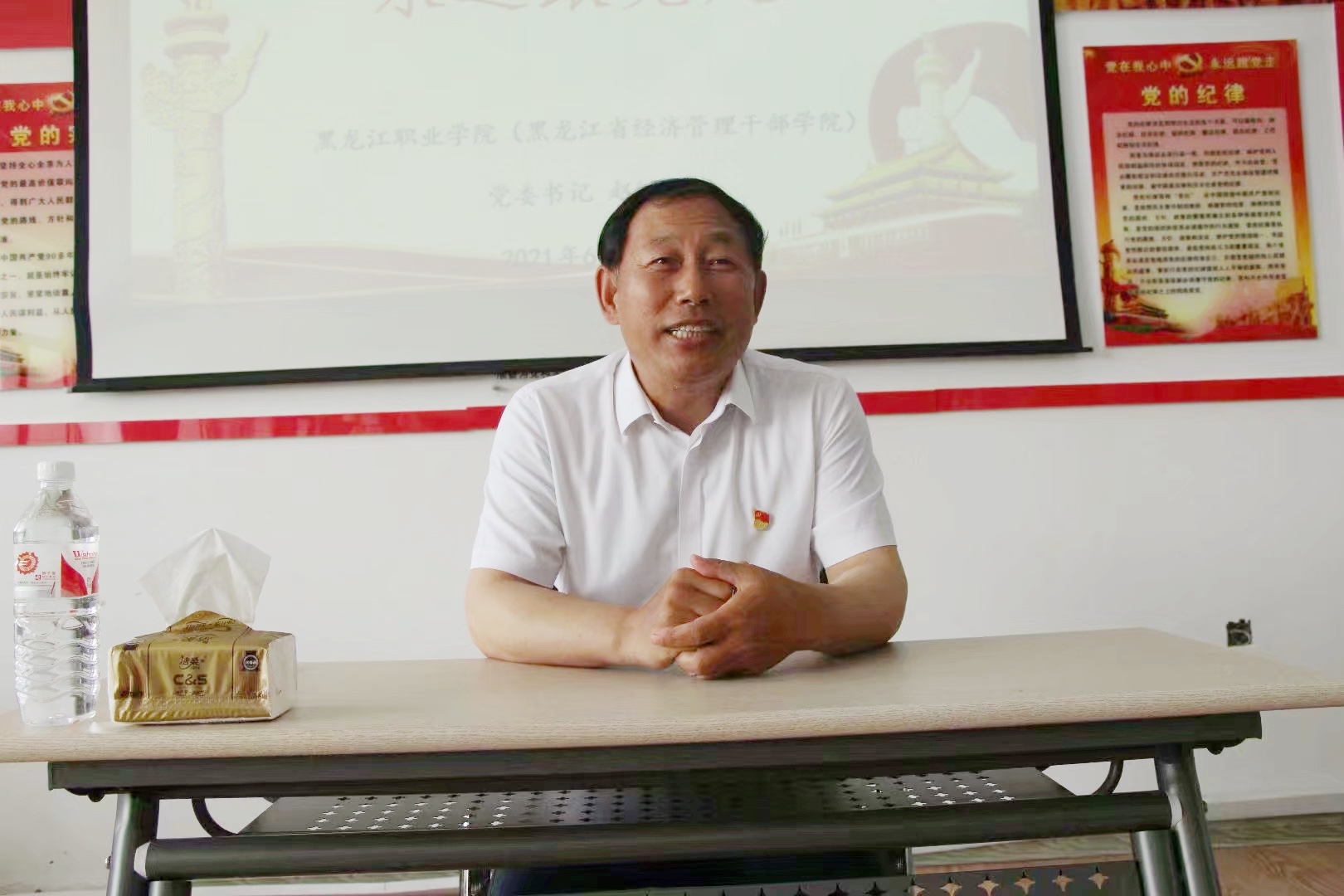 为深入贯彻习近平总书记关于党史学习教育重要讲话精神,推动党史学习教育扎实开展,按照省委教育工委党史学习教育的要求和学校党委党史学习教育工作安排,6月29日,党委书记赵继会为工商管理学院党总支党员干部讲授《永远跟党走》专题党课。