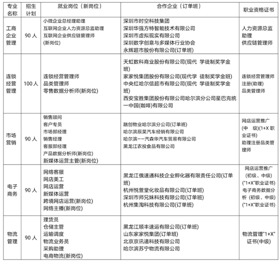 详细介绍:本专业面向新零售及电子商务领域,培养思想政治坚定、德技并修、全面发展,具有一定的科学文化水平、良好的职业道德和工匠精神,掌握现代企业经营理念和管理方法、日常行政管理、商务管理、现场管理与控制等专业技术技能,具备认知能力、合作能力、创新能力、职业能力等支撑终身发展、适应时代要求的关键能力,具有较强的就业创业能力,计划编制、沟通协调、过程控制等能力,能够从事企业行政助理、人力资源助理、营销主管、人力资源专员等工作的高素质劳动者和技术技能人才。