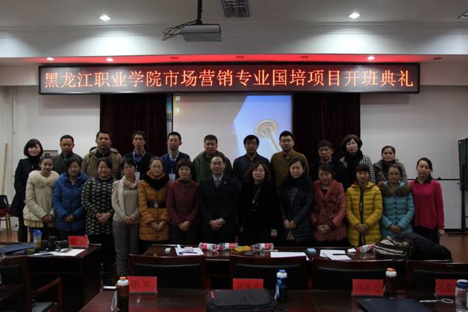 2014年2月9日9时,由工商管理学院承办的“国培计划”项目——全国高职院校“市场营销专业骨干教师社会服务能力提升培训高级研修班”开班典礼在培训中心五楼会议室举行。学院副院长王明海、教务处长王晓典、来自省内外十二所高职院校的20位市场营销骨干教师及工商管理学院全体老师出席。仪式由工商管理学院副院长刘璇主持,工商管理学院院长张凤英致欢迎词,市场营销团队带头人刘宁代表国培项目组发言。