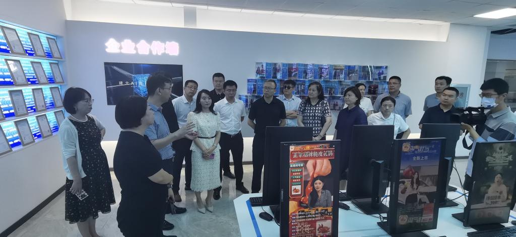 7月19日beat365中国官网数字商贸学院党总支书记张玲、副院长刘宁、网络直播与运营专业负责人高霞,赴明水县参加由黑龙江省教育厅组织的,黑龙江高校科技成果转化联盟对全国最大AI数字人基地调研和“黑土优品”选品对接活动。