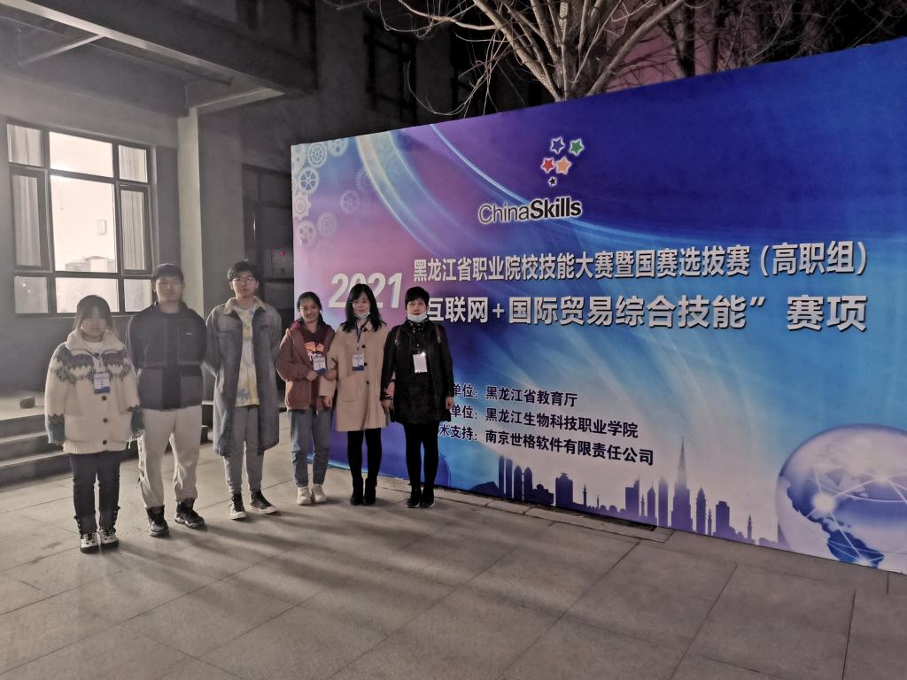 4月17日,工商管理学院电子商务教研室高葳、贾妍心两位老师,带领电子商务2020级1班韩昆妤、杨新秀,电子商务2020级4班张弛、涂文豪,共四名学生参加了2021黑龙江省职业院校技能大赛暨国赛选拔赛(高职组)“互联网+国际贸易综合技能”赛项比赛。