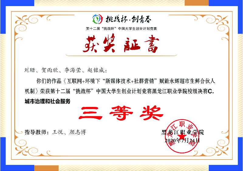 今年5月,由孟璐老师指导的市场营销优学社和李金立老师指导的龙鉴历史社在beat365所有社团的评比中,以优异的成绩获得了校级“十佳社团”荣誉称号。7月,由王悦老师指导的营销策划社团在beat365第六届中国国际“互联网+”大学生创新创业大赛校级决赛(创意组)中荣获二等奖,并在第十二届“挑战杯”中国大学生创业计划竞赛校级决赛中荣获三等奖。市场营销技能协会在韩松男老师的带领下,连续6年获得黑龙江省市场营销技能大赛一等奖,曾在2014-2015年蝉联全国一等奖的优异成绩。