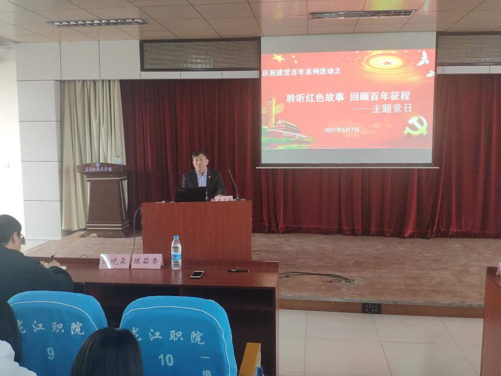 本次主题党日活动由教学支部书记卢凤伟主持。本次主题党日特邀双城区委党校党史教育专家陈茹香老师为全体与会者带来《百年筑梦,风华正茂》为主题的党史专题讲座,从党史教育对大学生理想信念教育的重要意义、中国共产党百年奋斗的发展历程和中国共产党百年奋斗的经验启示三个方面进行了深入讲解,陈老师的讲座富有激情、内容精彩,引起与会者共鸣。最后,党总支书记王文焕,发表重要讲话,号召全体党员干部要学史明理、学史力行,扎根教育事业,守初心、担使命,为推动学校发展,不懈努力!