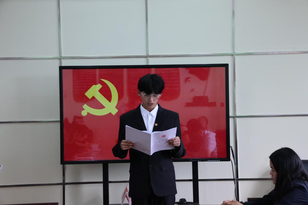 随后,党支部书记赵玉桥介绍了本次大会的议程。11名发展对象依次上台,向党组织汇报了自己对党的认识、入党动机、基本情况,表达了对党的忠诚和加入党组织的渴望。在发展对象汇报完毕后,入党介绍人分别介绍了发展对象的培养考察情况,并对其能否入党表明了意见。