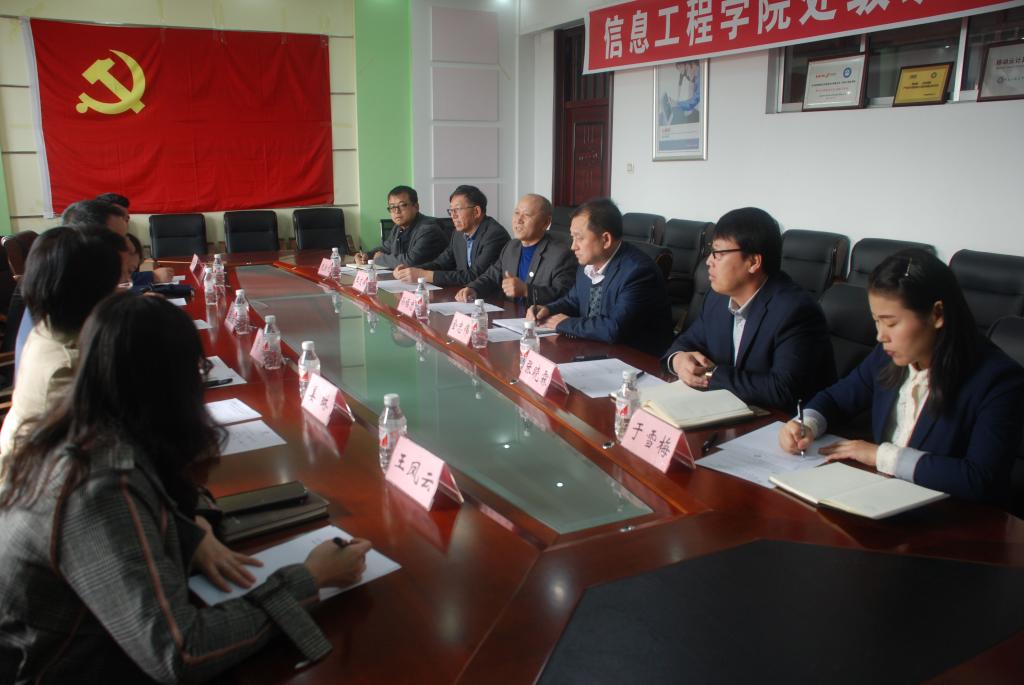10月15日上午,黑龙江生物科技职业学院副院长王岩、信息工程学院院长常顺一行五人来到beat365信息工程学院开展产教融合学术交流。beat365副校长孙福忠、信息工程学院院长金忠伟、党总支书记王文焕和副院长张晓霖等六人参加会议。