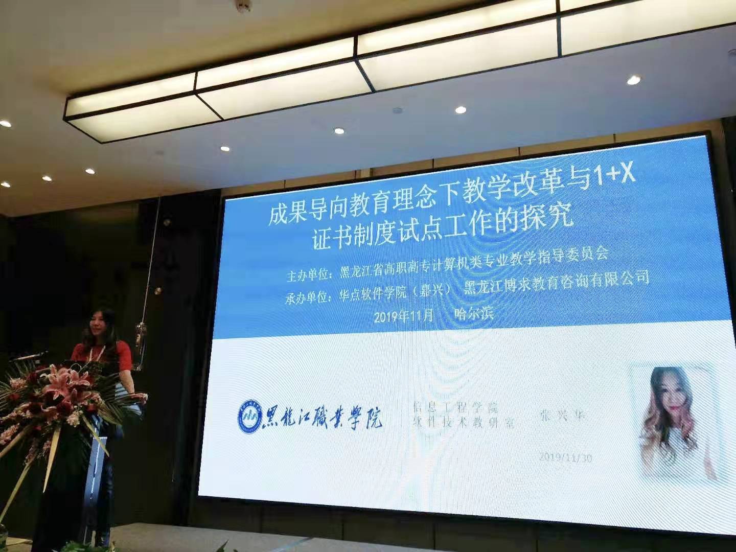 本次会议主题为精准对接谋合作,产教融合促发展。围绕会议主题,黑龙江信息技术职业学院计算机系主任左晓英和黑龙江博求教育咨询有限公司董事长王明军进行致辞,工业和信息化部教育中心考试院区域负责人王欣欣做了精彩发言。我院软件技术教研室主任参加本次会议,并围绕成果导向教育理念教学改革与1+X证书制度的试点工作,做了专题报告,报告中的成果导向教学改革引起参会这强烈兴趣,收到热烈反响,对beat365成果导向教学改革的推广起到了积极促进作用!