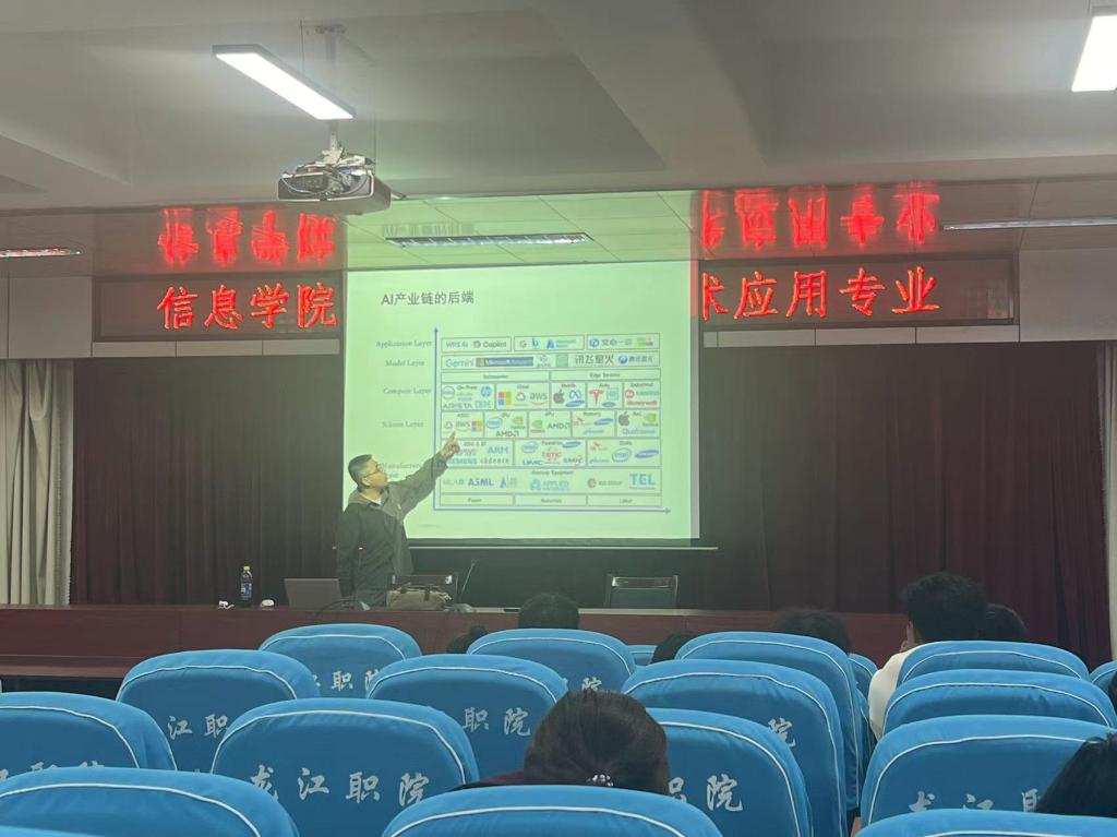 哈尔滨国云数据科技有限公司技术总监陆洪富就企业对人工智能技术应用专业学生的要求、毕业去向和行业发展等几方面开展进行了分享,陆总监鼓励学生树立正确的专业价值观,精研专业技能,提升文化素养,合理规划学业,丰富大学生活。