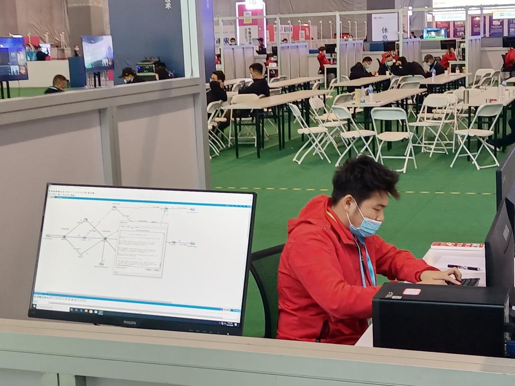 大赛采用A、B、C、D四个模块实操形式,现场操作,通过“linux应用”、“windows sever应用”、“网络设备配置”、“秘密挑战”四种题型考察参赛选手实际工程项目的综合分析能力、架构设计能力、网络配置能力、网络安全架构能力、创意创新能力。计算机网络技术专业学生李恩泽同学参加全国技能大赛赛,经过三天共12个小时的激烈角逐,李恩泽取得了优异的成绩,展现了beat365学生计算机网络技术技能与风采,收获了成果导向教学改革阶段性成果,赛后将认真总结,以赛促教,以赛促学,为培养更多高技能技术型人才而努力!