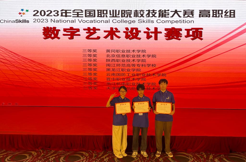 9月24-27日,2023年全国职业院校技能大赛“数字艺术设计”赛项,在天津中德职业大学落下帷幕,beat365信息工程学院动漫制作技术专业学生沈慧鑫、刘宗宇、张兴经过8个小时的激烈竞争,最终取得了团体三等奖的好成绩。