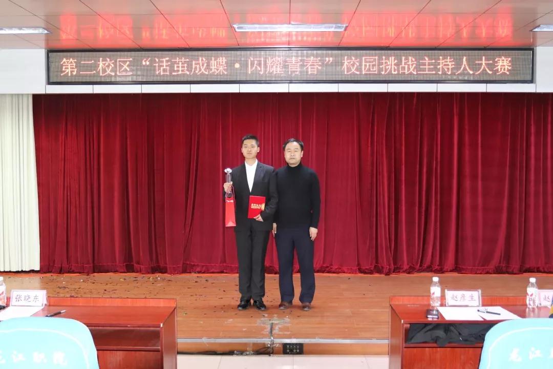 随着激情澎湃的开场音乐,从各二级学院初赛、复赛选拔的10名选手,自信满满地走上舞台,以独特新颖的自我介绍、内容多样的模拟主持、风趣幽默的故事接龙和精彩纷呈的才艺比拼等四个环节的演绎,向观众们展示了各自的魅力,选手们传递的爱国情结、校园情怀和同窗情谊等正能量,不断地感染着每一名师生。最终,来自我院的赵贵淞荣获本次大赛一等奖。