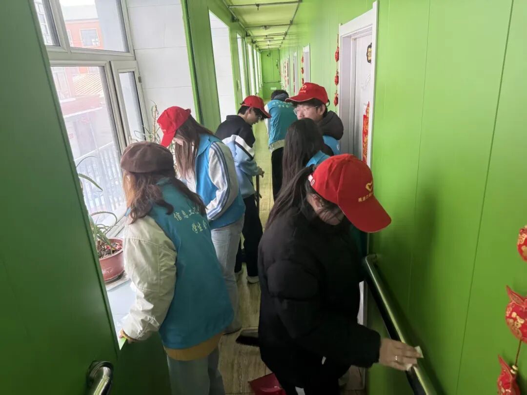 活动现场,志愿者们分工明确、干劲十足,仔细拖拭地面污渍,细致清扫角落灰尘,认真擦拭扶手与设施表面,将敬老院的每一处角落打扫得干干净净、焕然一新。