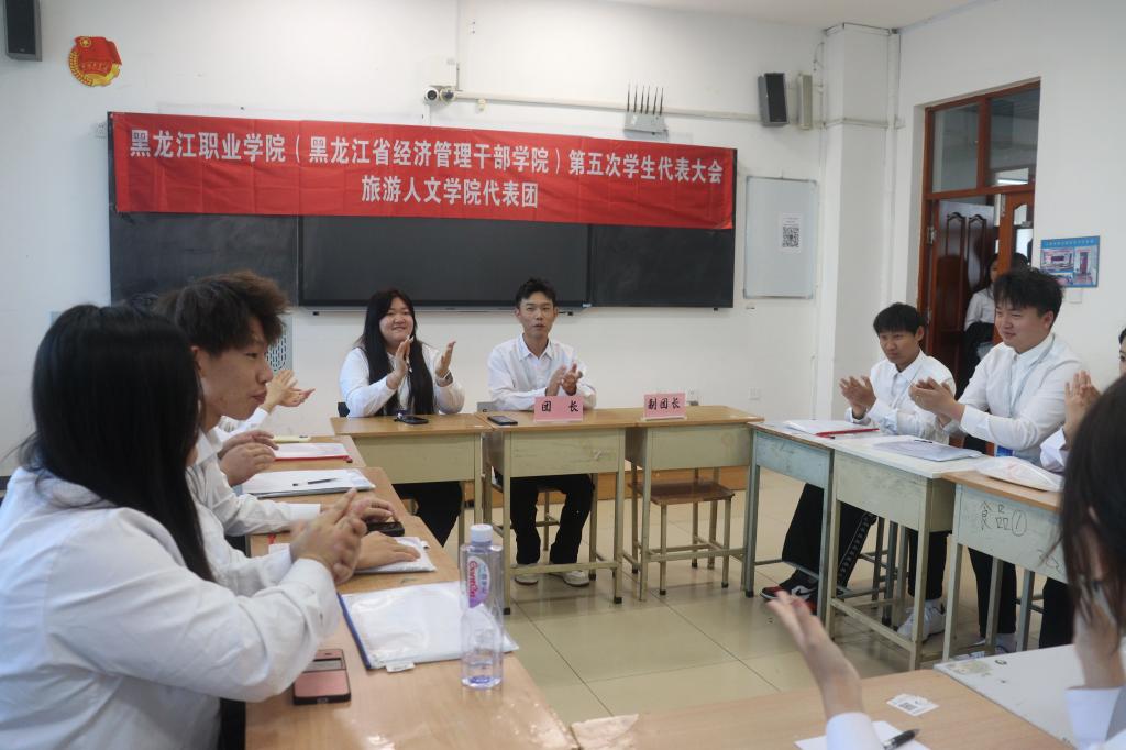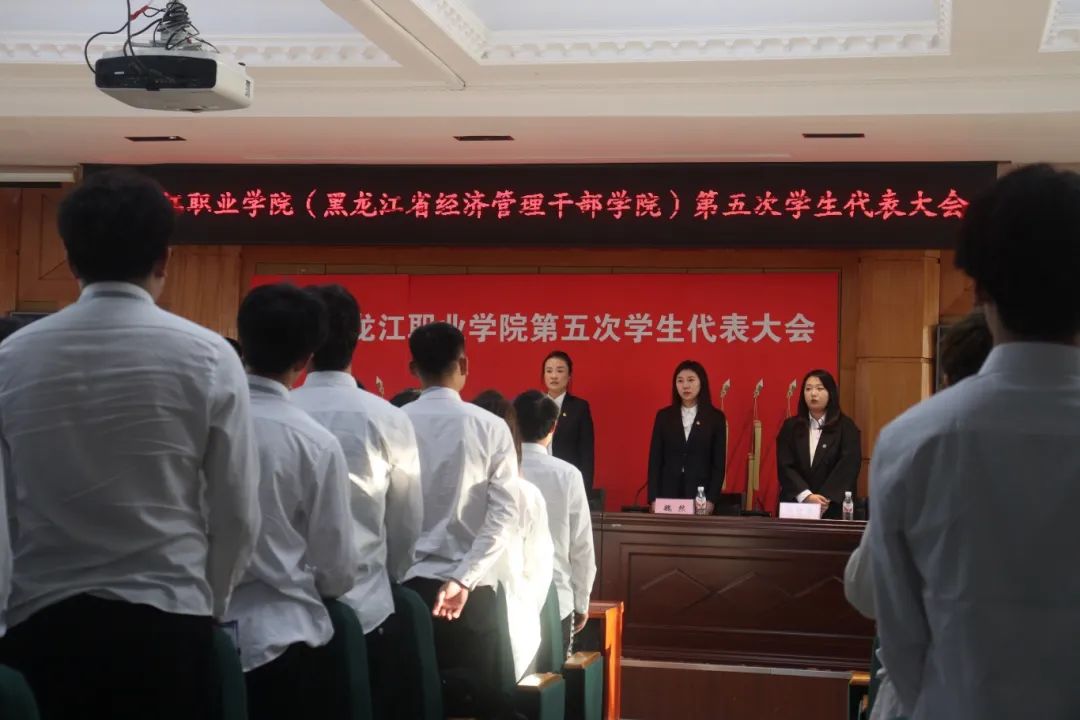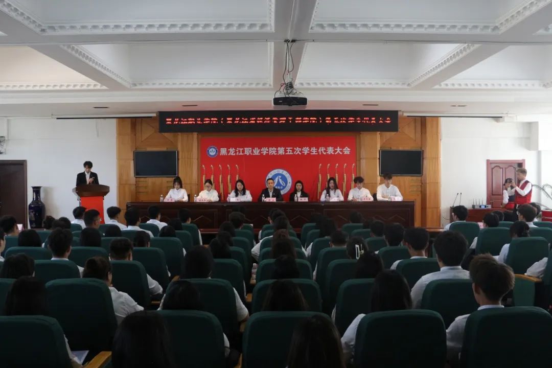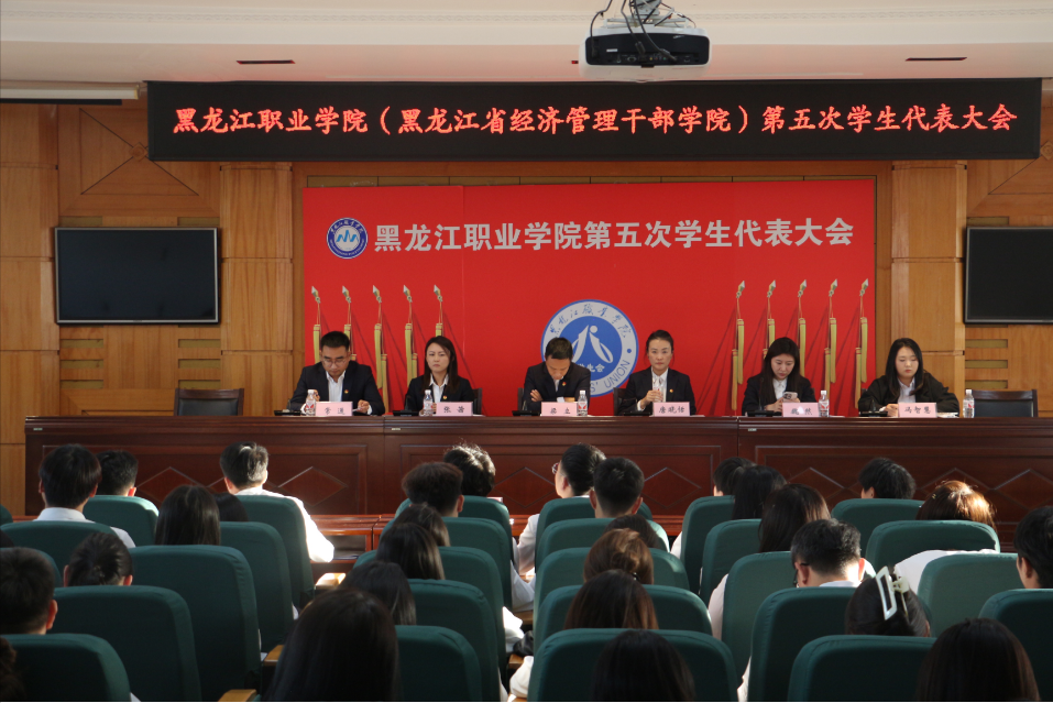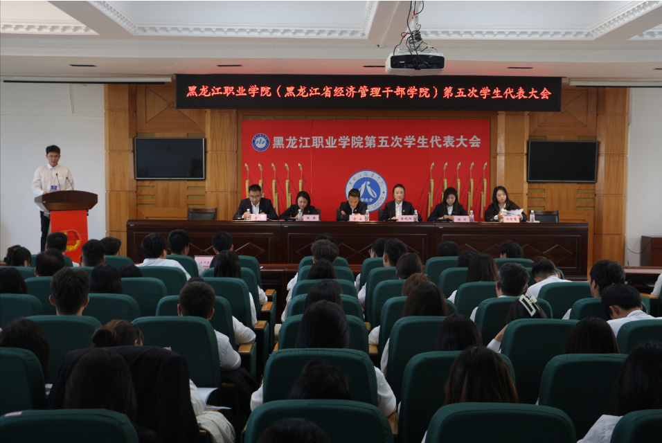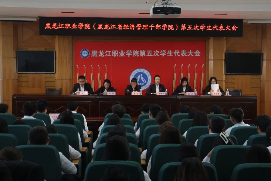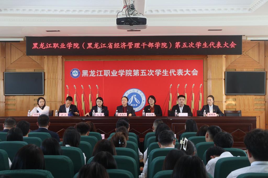 经学校党委和省学联批准,10月18日下午,beat365于清华楼九楼经济报告厅隆重召开第五次学生代表大会。beat365中国官网副校长、党委委员吴艳秋出席大会并致辞,beat365中国官网党委委员、宣传统战部部长杨东辉,学生工作部党总支书记、校团委书记石倩、黑龙江省学生联合会驻会执行主席赵宏禄,各二级学院团总支书记、团委全体工作人员以及来自各二级学院的163名学生代表参加本次大会。