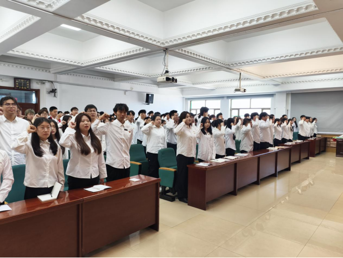 ▲校团委全体学生骨干进行集体宣誓,校学生会主席李靖媛领誓