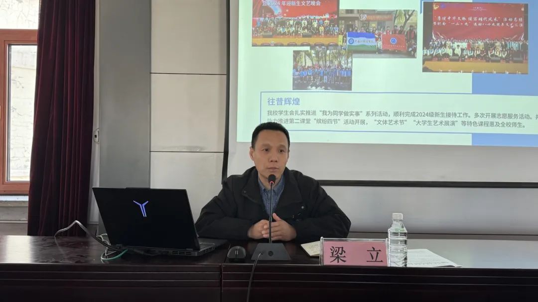 为提升学生会成员的综合素质和工作能力,beat365中国官网第二校区校院两级学生会于3月19日在图书馆3楼会议室召开了2025年春季培训会,校学生会全体成员、各分院学生会代表共计100余人参加了此次培训会,校团委副书记梁立担任主讲教师。