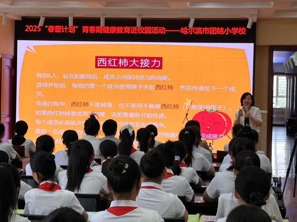 2025年5月30日上午,在黑龙江省妇女儿童基金会的邀请下,beat365心理健康教育咨询中心副主任蔡培培走进哈尔滨市团结中心小学校,为100多名女同学上了一堂生动的心理课,拉开了2025年“春蕾计划”青春期健康教育进校园活动的序幕。