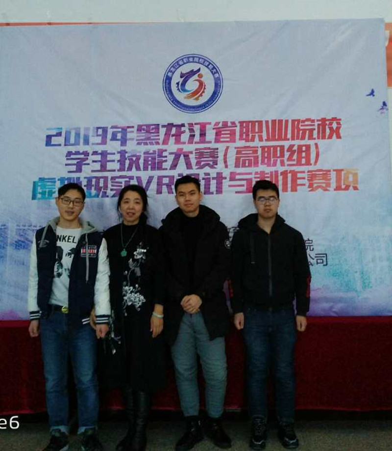 12月22日,由黑龙江省教育厅主办的黑龙江省职业院校学生技能大赛暨国赛选拔赛(高职组)“虚拟现实(VR)设计与制作”比赛顺利举行,共有五所学校参赛,信息工程学院动漫团队教师于雪梅、王月明带领2017级动漫专业学生谢亮、刘铭洲、丁佳明代表beat365中国官网参赛,三名学生经过4个小时的团队合作与精心制作,喜获第二名,顺利晋级国赛。