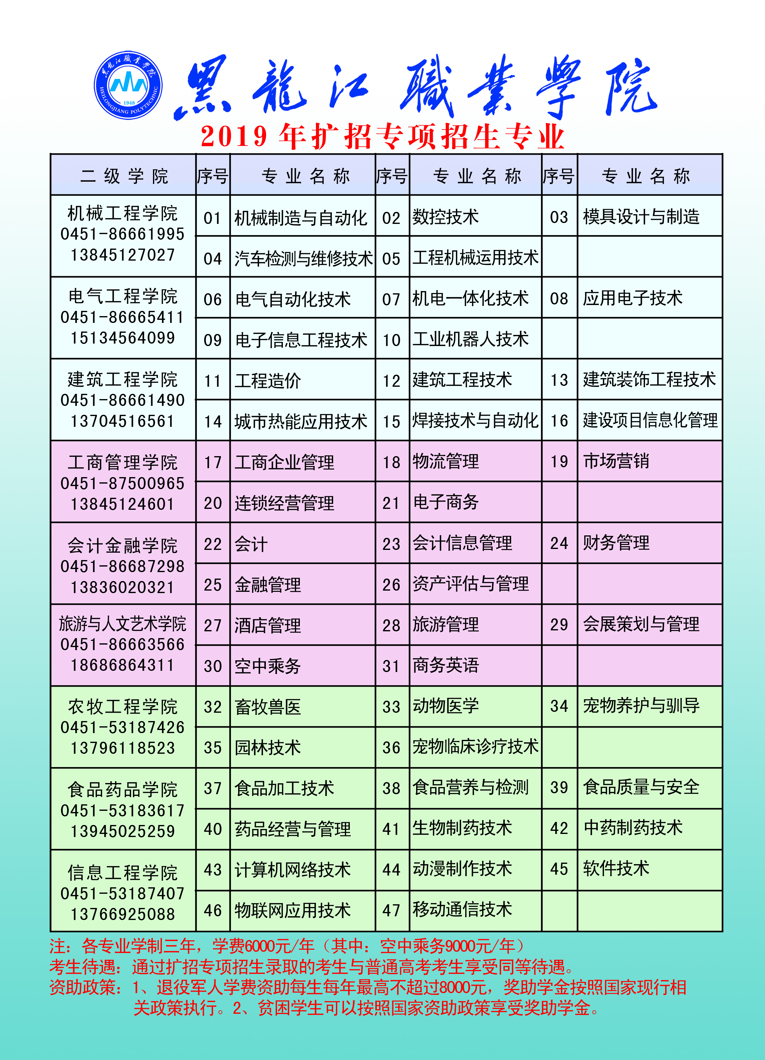 为贯彻落实李克强总理在2019年《政府工作报告》中提出的“高职院校扩招100万”讲话精神,根据省教育厅有关文件要求,beat365迅速整合优势资源,甄选优势专业,现对应往届高中毕业生、中职毕业生、退役军人、下岗工人和农民工等人员展开专项扩招。招生专业47个,招生计划1000人。