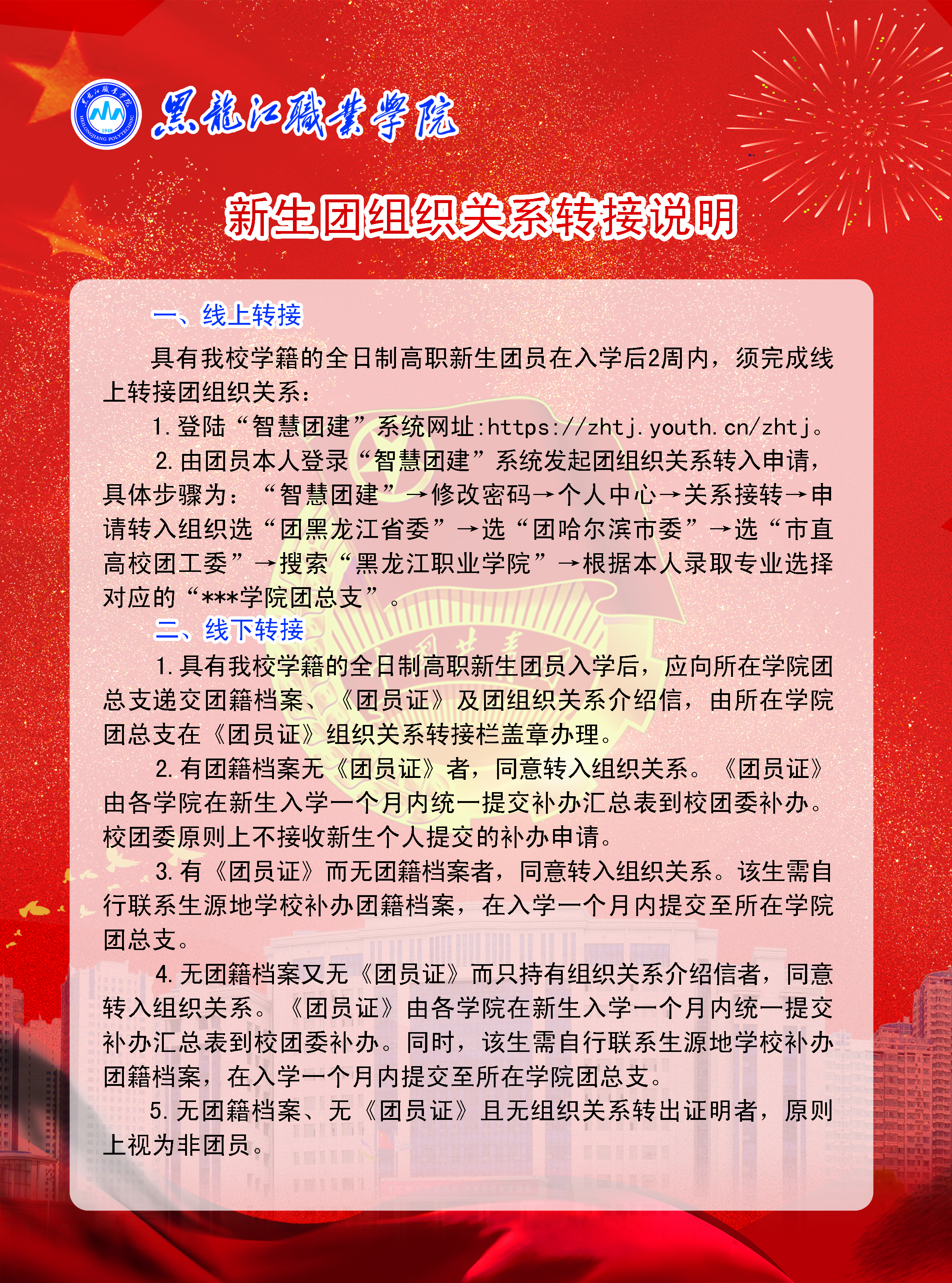 三、党团组织关系转迁。详见《新生党组织关系转接说明》及《新生团组织关系转接说明》。